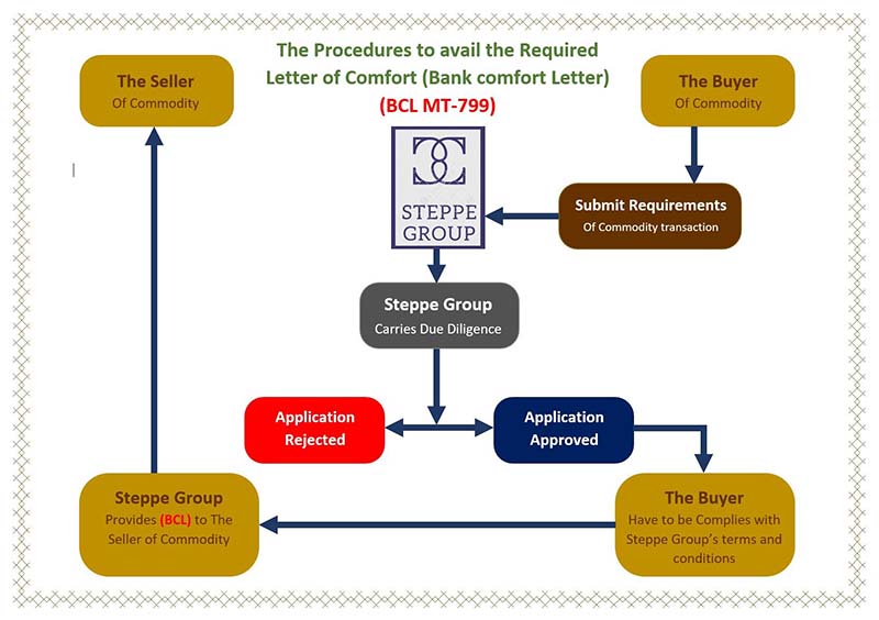 Bank Comfort Letter, a written undertaking by a bank to assure the financial capability of their client to sign the contract. Further, this is issued on behalf of the buyer and in favor of the supplier to indicate the buyer’s financial capability to purchase bulk goods or commodities. In today’s trade industry, suppliers always want to work with a financially competent buyer who can pay for the supplied goods on time without any default. That’s why, before signing the sales contract, sellers usually demand buyers to provide Bank Comfort Letters. By providing the Bank Comfort Letters, buyers prove their financial ability to purchase the offered products and show their eligibility to do business in the global trade market. Further, it also helps to build a trust bridge between buyers and sellers; which is of utmost importance in overseas trade transactions. BCL MT799 acts as an inexpensive way for buyers to show their financial strength to complete the purchase of bulk goods. Are you in need of a Bank Comfort Letters to show your financial status to your supplier? Now at Steppe Group LLC , we offer a simple and easy procedure to facilitate the required MT799 in as fast as 48hrs.